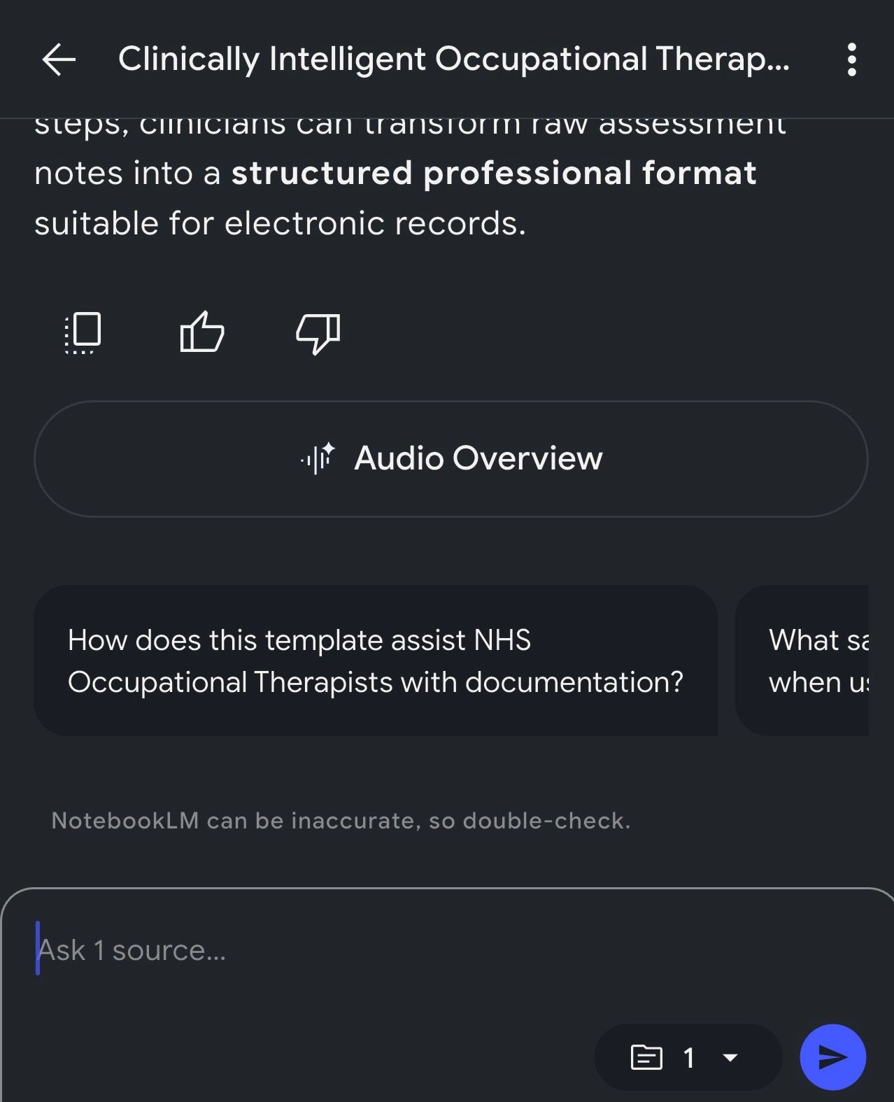 NotebookLM is built on what Google describes as safe AI principles. In practice this means it can be overly cautious with medical content. If you upload clinical documents, keep them clear and concise rather than graphic or highly technical.